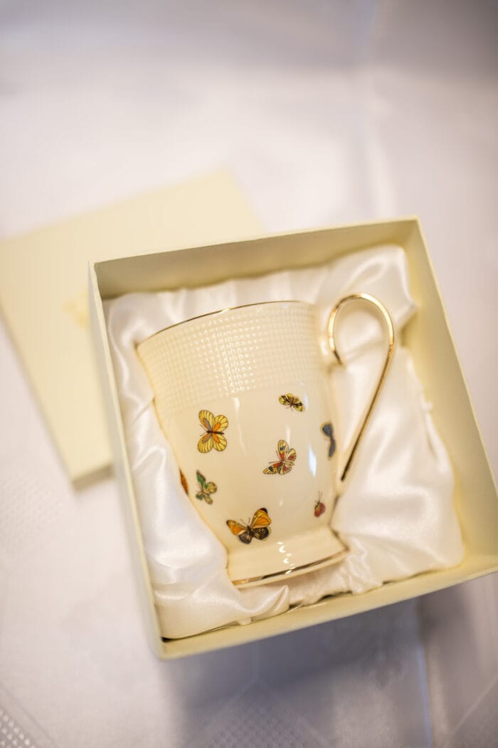 Krūzīte ar tauriņu attēliem + kastīte